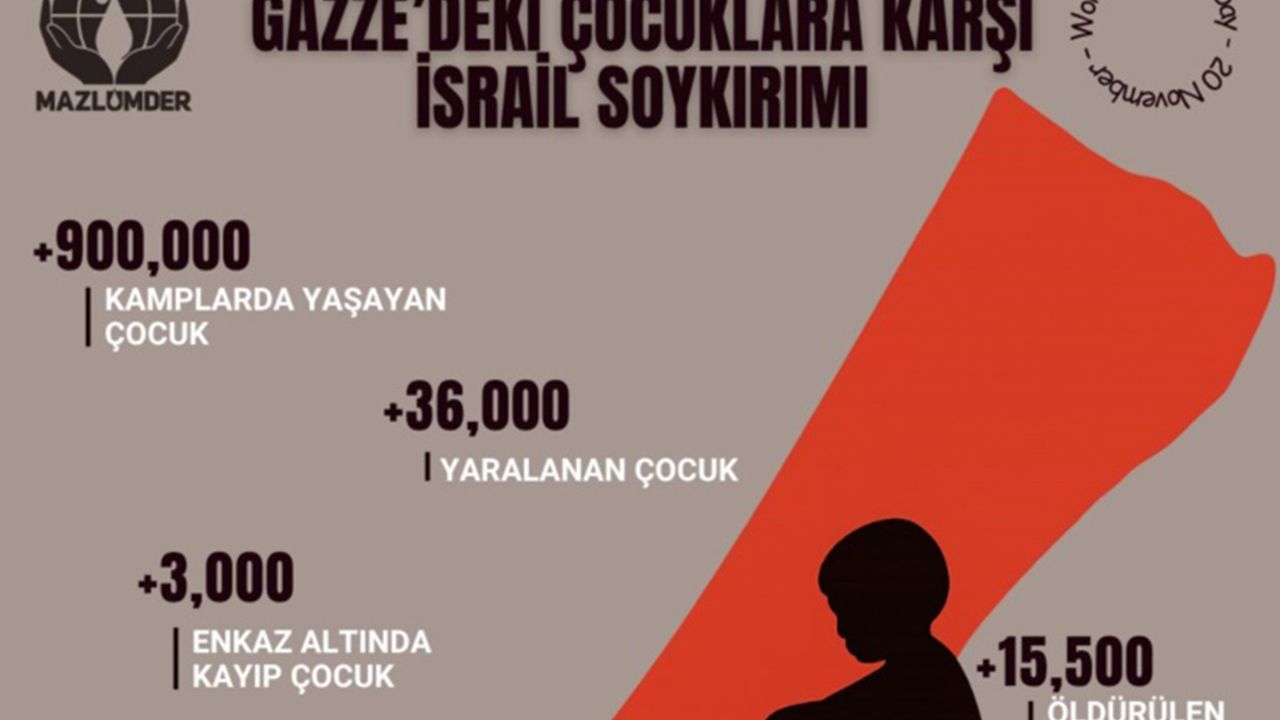 MAZLUMDER Çocuk Hakları Komisyonu, 20 Kasım Dünya Çocuk Hakları Günü’ne ilişkin yaptığı açıklamada, Gazze’de devam eden saldırıların çocukları hedef aldığını ve bu şartlarda bugünün kutlanmasının mümkün olmadığını ifade etti.