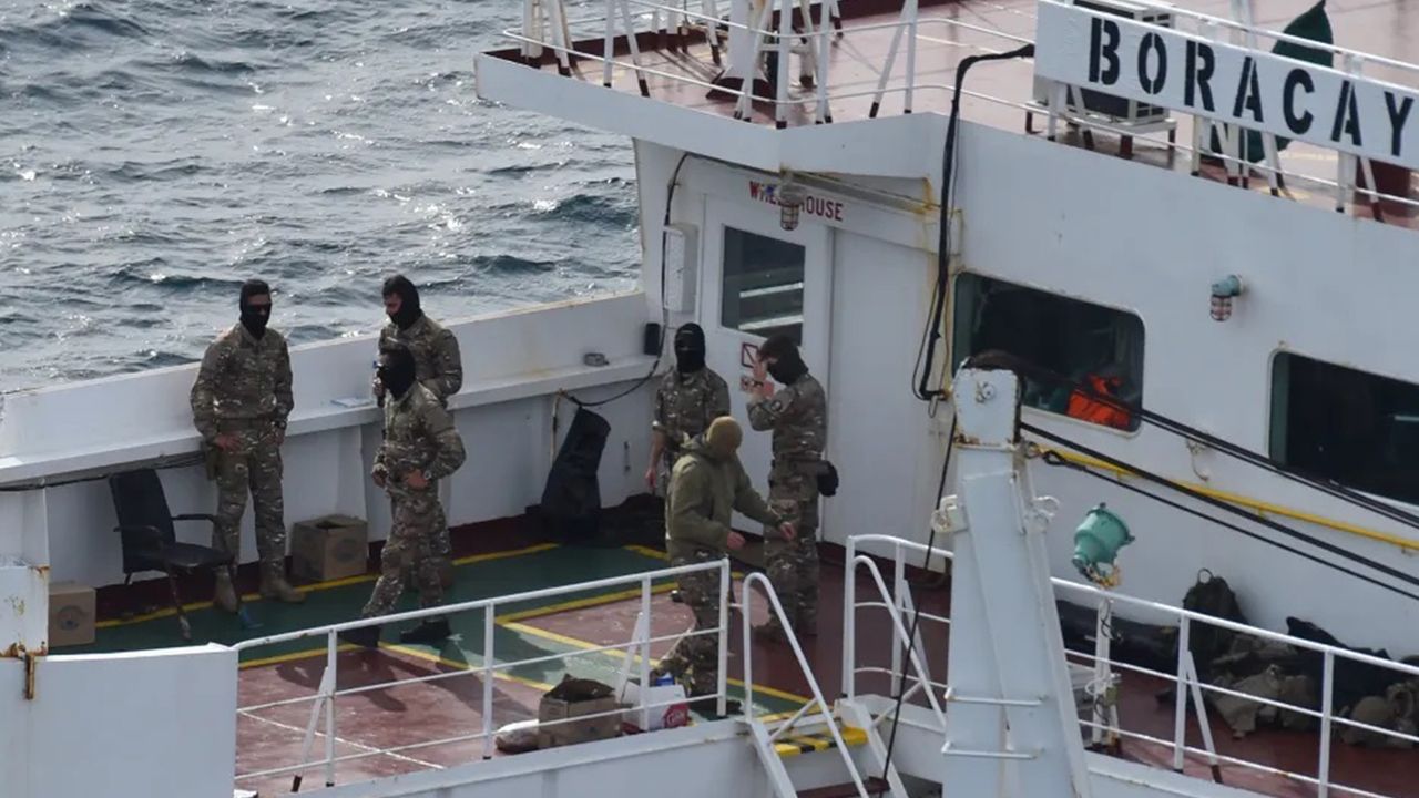 Rusya’nın “hayalet filosu”na ait olan ancak Benin bayrağı taşıyan bu çok kimlikli geminin, Rusya tarafından “dron fırlatma platformu” olarak kullanılmış olmasından şüpheleniliyor. (İLKHA)