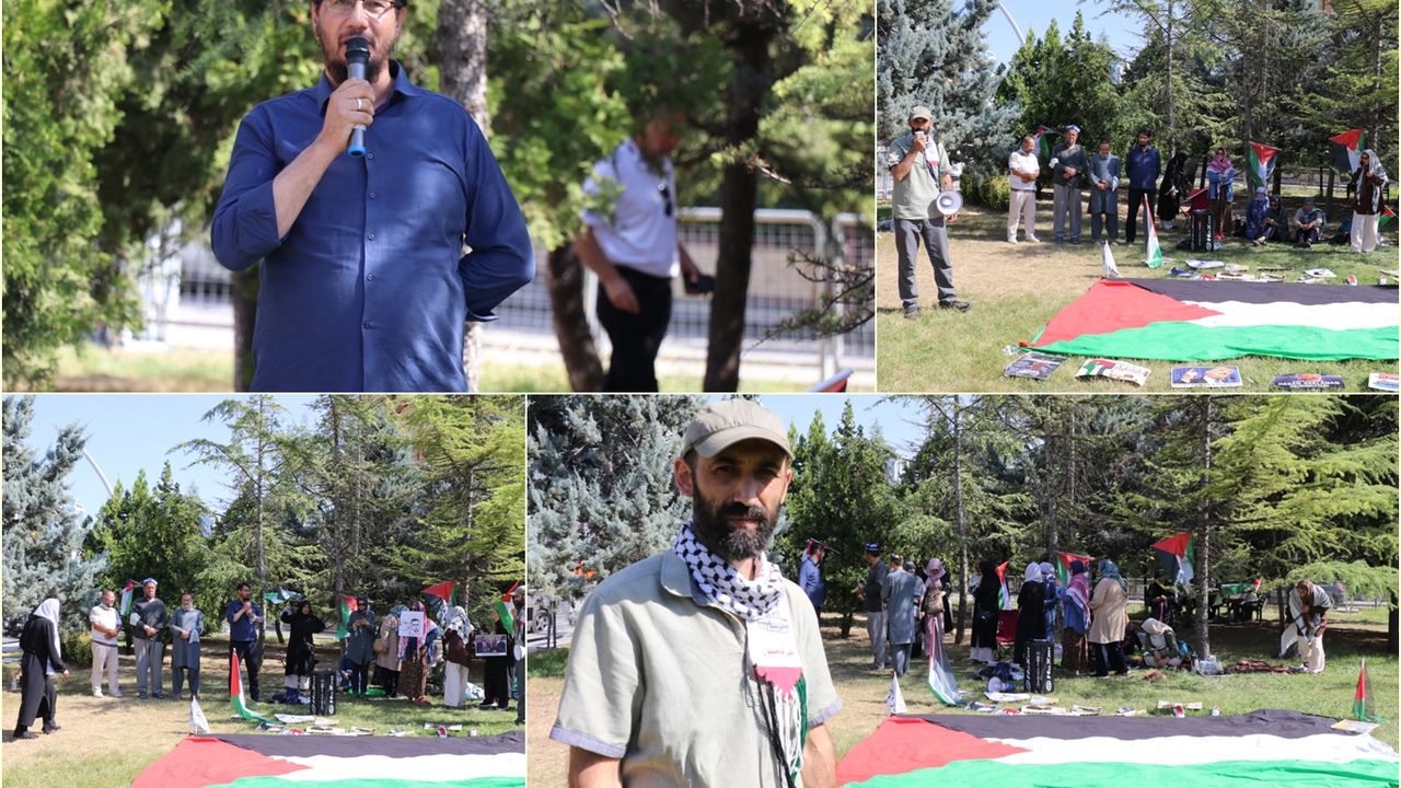Konya'dan Gazze nöbetine destek için Ankara'ya gelen Aksa Dayanışma Platformu adına alanda Ersoy Kağnıcıoğlu, bir konuşma yaptı.