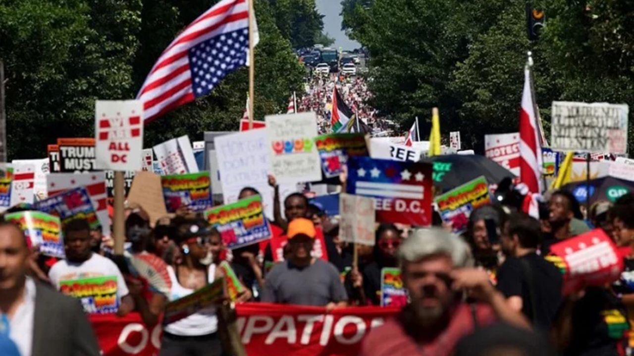 Çok sayıda insan hakları örgütü ve işçi sendikalarının da katıldığı gösteri için Meridian Hill Park'ta bir araya gelen göstericiler, Beyaz Saray'ın yakınındaki Freedom Plaza Meydanı'na yürüdü.