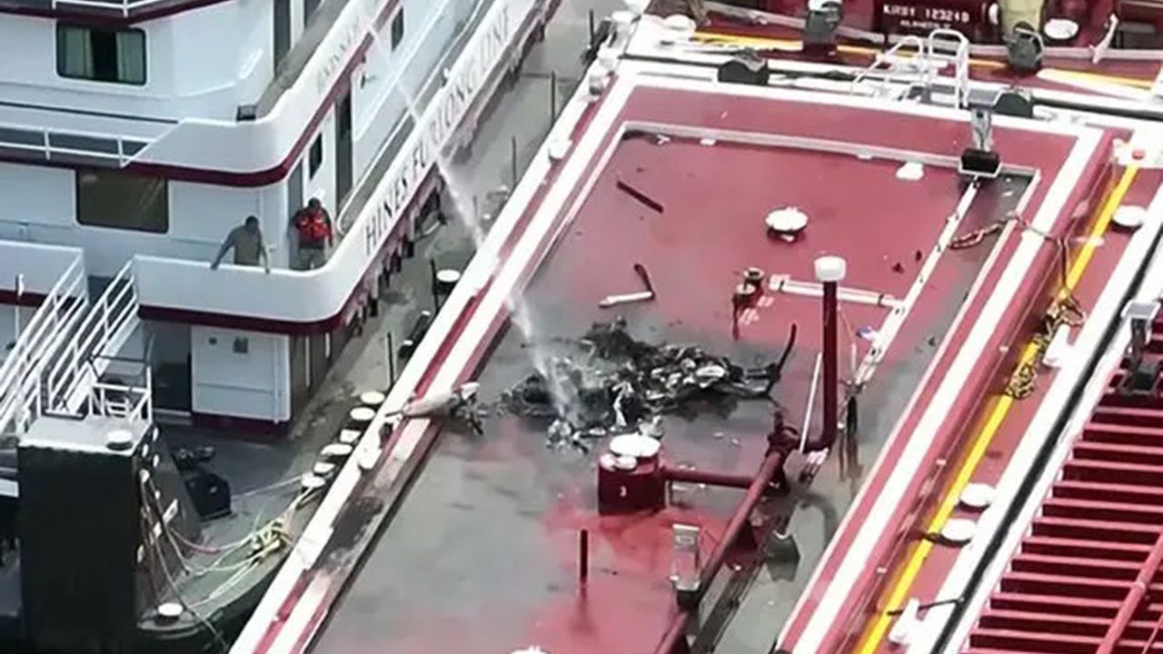 ABD'li yetkililer, Illinois eyaletine bağlı East Alton bölgesinde elektrik hattına çarpan helikopterin Mississippi Nehri'ndeki mavnanın üzerine düşerek alev aldığını açıkladı.
