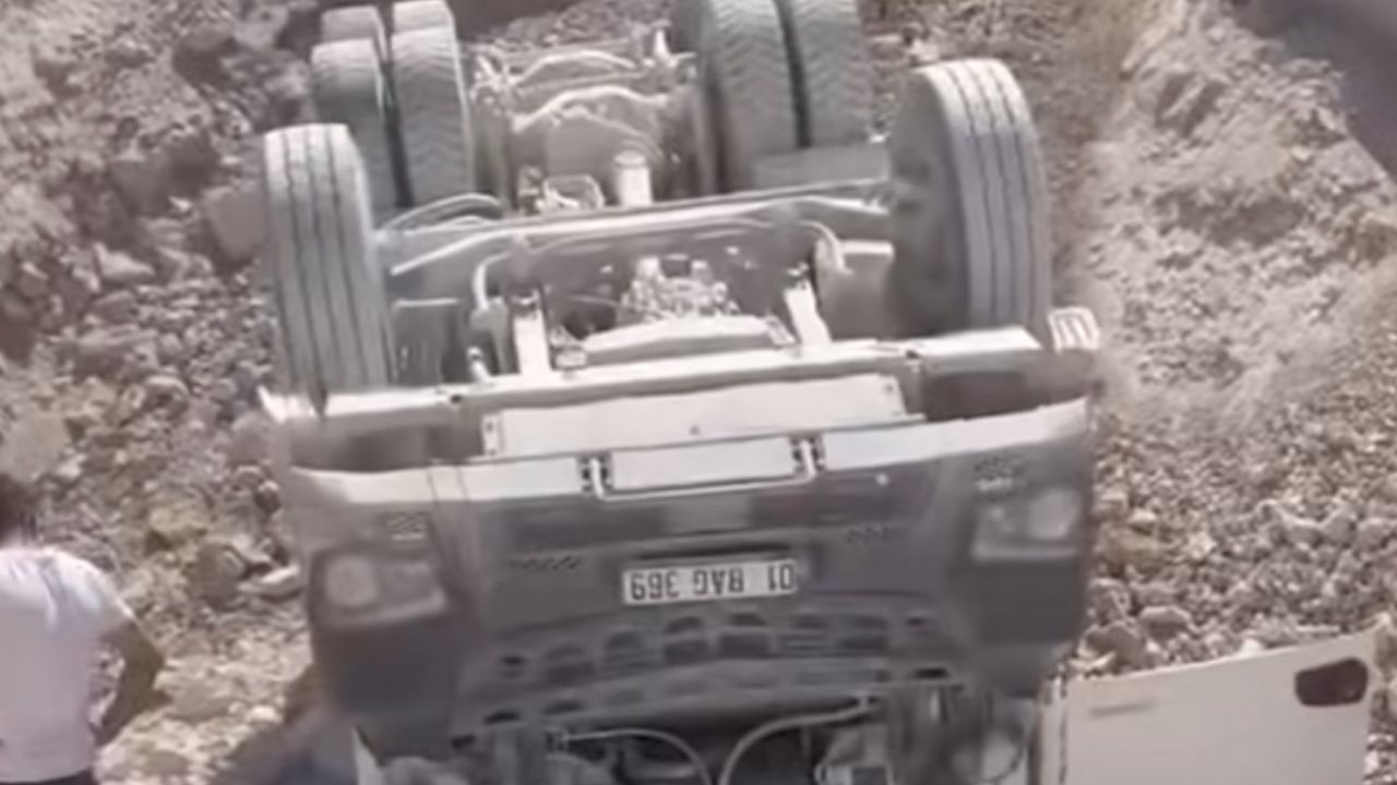 Edinilen bilgilere göre, 01 BAG 369 plakalı kamyon henüz belirlenemeyen bir nedenle devrildi.