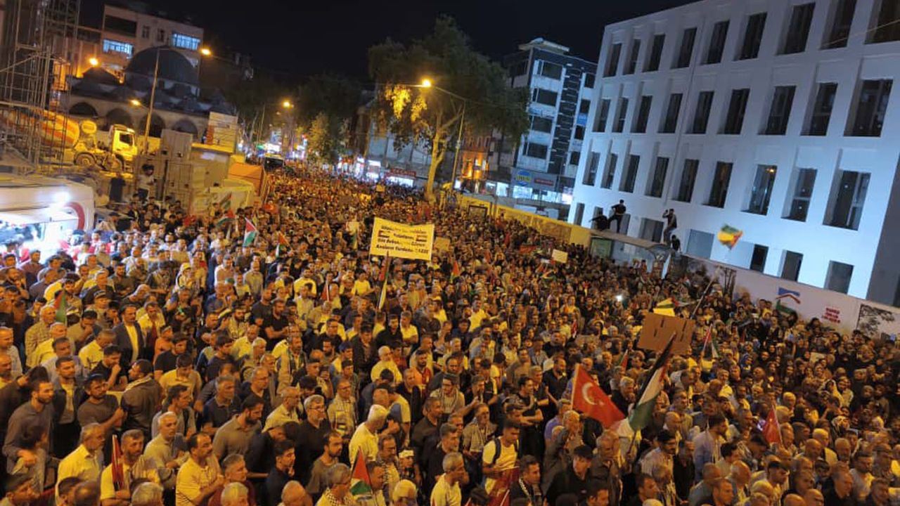 Kalabalık “Kahrolsun siyonizm”, “Filistin’e özgürlük”, “Katil israil hesap verecek” sloganları atarak şehir merkezine doğru yürüdü. Katılımcılar Filistin halkına destek mesajları içeren dövizler taşıdı.