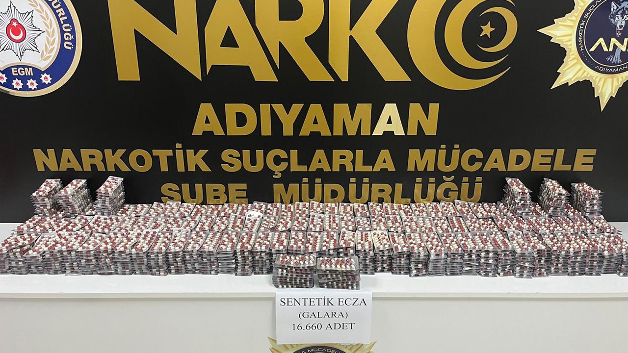Konuya ilişkin Valilikten yapılan açıklmada, "Narkotik Suçlarla Mücadele Şube Müdürlüğü ve İstihbarat Şube Müdürlüğü koordineli yürütülen çalışmalar neticesinde; uyuşturucu madde imal ve ticareti yapan şahısların yakalanmasına yönelik yapılan çalışmalarda; 16 bin 660 adet sentetik ecza hapı ele geçirilmiştir." denildi.