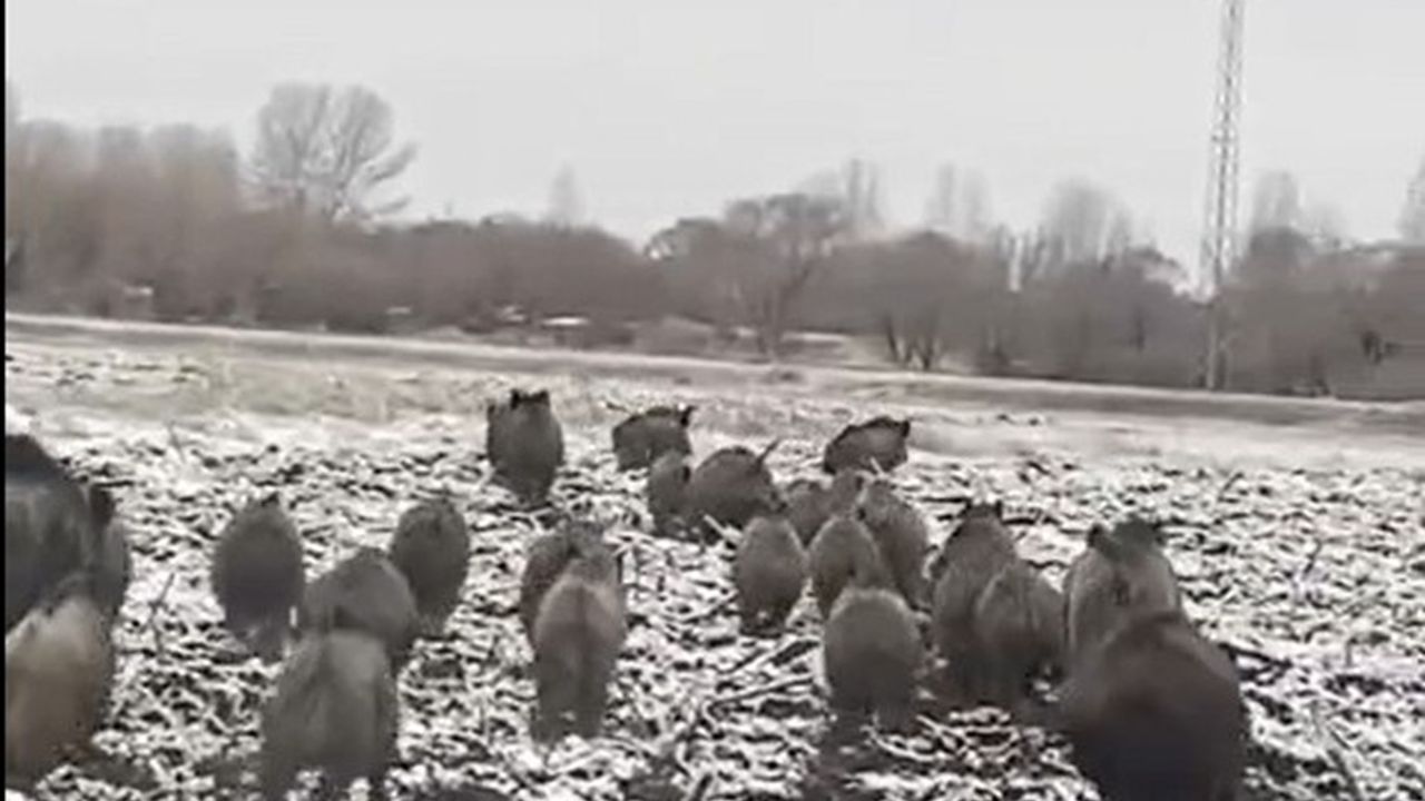 Genellikle geceleri veya sabahın erken saatlerinde görülen yaban domuzları, bugün öğle saatlerinde toplu halde ortaya çıktı. 50'ye yakın domuzun tarlalardan veya ağaçlık alanlardan geçişi, o anları cep telefonlarıyla kaydeden vatandaşlar tarafından görüntülendi.