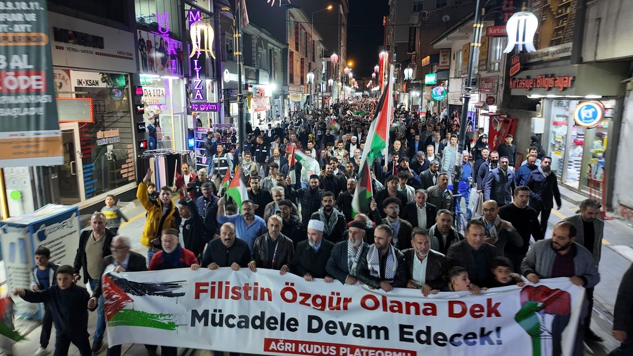 Ağrı Kudüs Platformu tarafından organize edilen yürüyüşte binlerce kişi aynı anda yürüdü.
