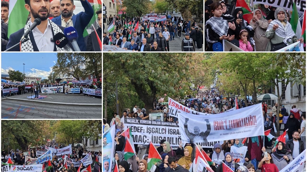 Bursa Ulu Camii önünde bir araya gelen vatandaşlar, 15 Temmuz Demokrasi Meydanı’na kadar yürüdü. Yürüyüş boyunca Filistin ile Gazze halkına ve direnişine destek sloganları atıldı.