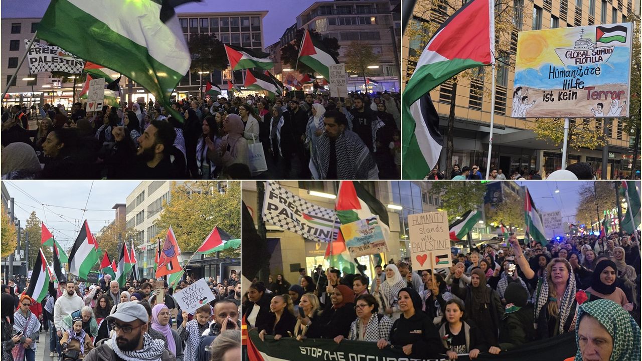 Protestocular, yürüyüş boyunca, "İşgal suçtur, israil'i boykot edin", "Ateşkes yetmez, Friedrich Merz yargılanmalı" (Almanya Başbakanı hakkında), “Ateşkes yetmez, Scholz ve Baerbock yargılanmalı” (Almanya’nın eski başbakanı ve dışişleri bakanı hakkında), "Özgür Filistin", “Nehirden denize Filistin özgür olacak” sloganları attı.