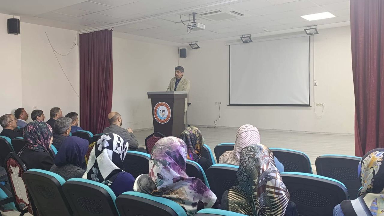 Anamur Şehit Yüksel Alçın Anadolu İmam Hatip Lisesinde düzenlenen toplantıya İlçe Müftüsü Mehmet Fidan, Okul Müdürü Mustafa İsmet Keskin ve Müftülük personeli katıldı.
