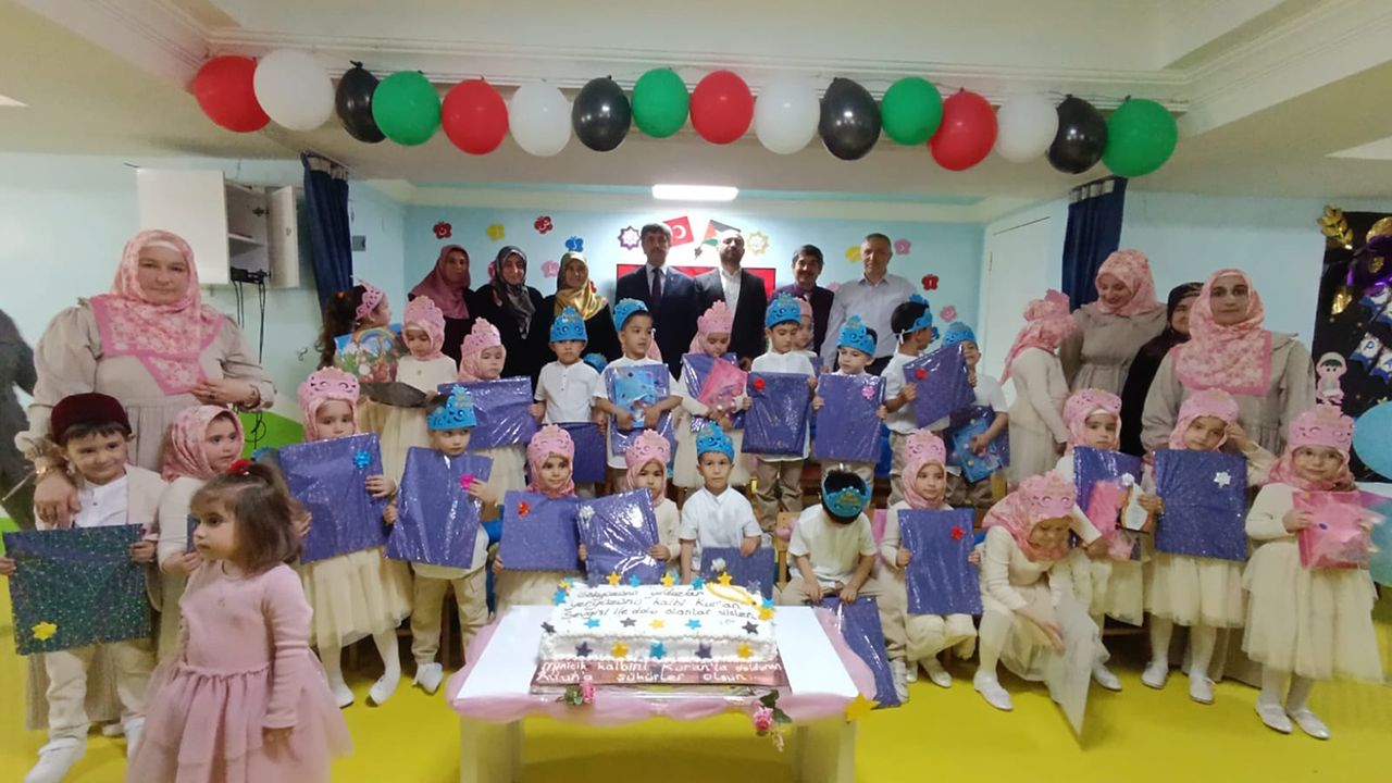 Müberra Mert 4-6 Yaş Kur'an Kursu'nda eğitim gören ve Kur'an'a geçen minik öğrenciler için "Kur'an-ı Kerim'i Okumaya Geçiş Programı" düzenlendi.