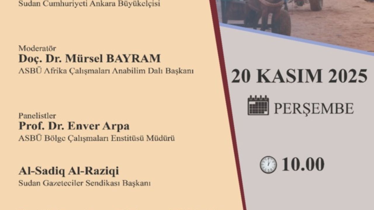 ASBÜ ve ASTP iş birliğiyle düzenlenen panelde, Sudan’daki çatışmaların bölgesel etkileri, barış süreçleri ve siyasi-sosyal dönüşümler detaylı biçimde değerlendirilecek.