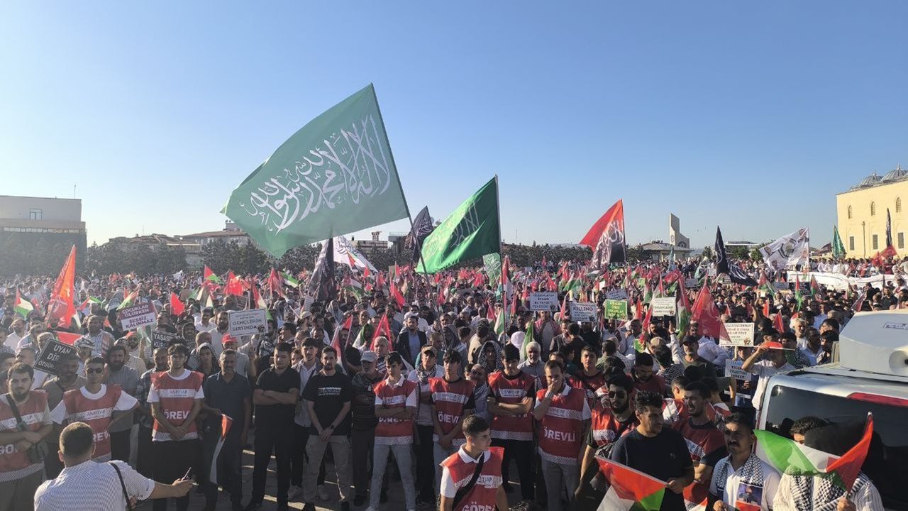 Sık sık tekbir getiren kalabalık, Gazze'ye destek çağrısında bulundu. (İLKHA)