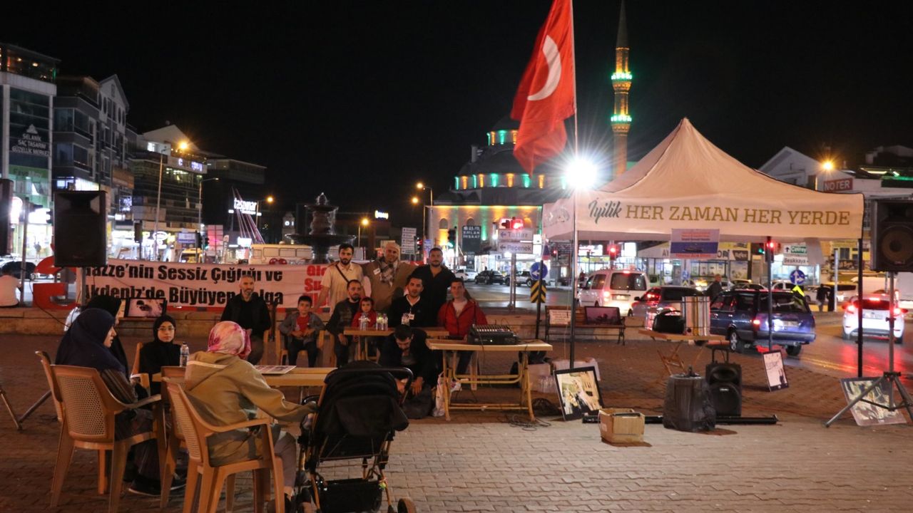 “Sessiz çığlık” sloganıyla düzenlenen etkinlikte, katılımcılar hem dualarıyla hem de kamuoyu oluşturma çabalarıyla Gazze halkının yanında olduklarını vurguluyor. Organizasyonu düzenleyen gönüllüler, “Kamp sandalyesini al, gel!” çağrısıyla herkesin desteğini bekliyor.