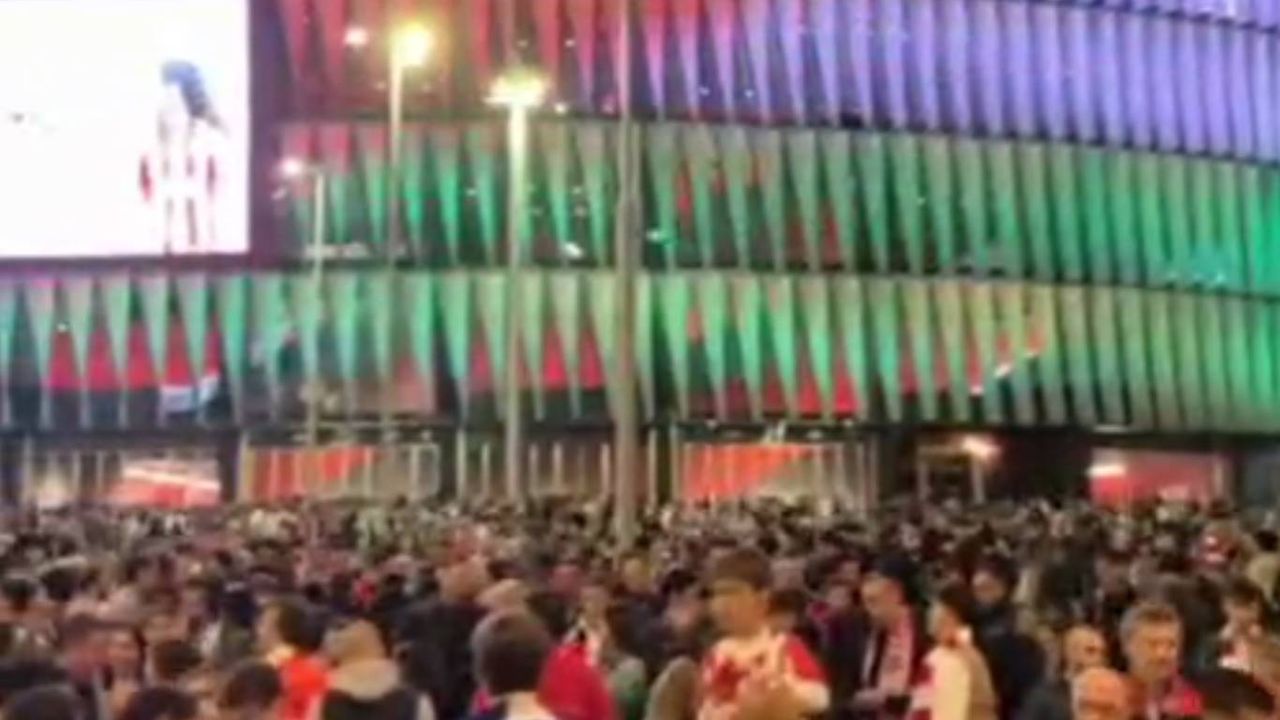 Kulüp, San Mamés Stadyumu’nu Filistin bayrağının kırmızı, yeşil, beyaz ve siyah renkleriyle aydınlatarak Gazze halkına destek mesajı gönderdi.