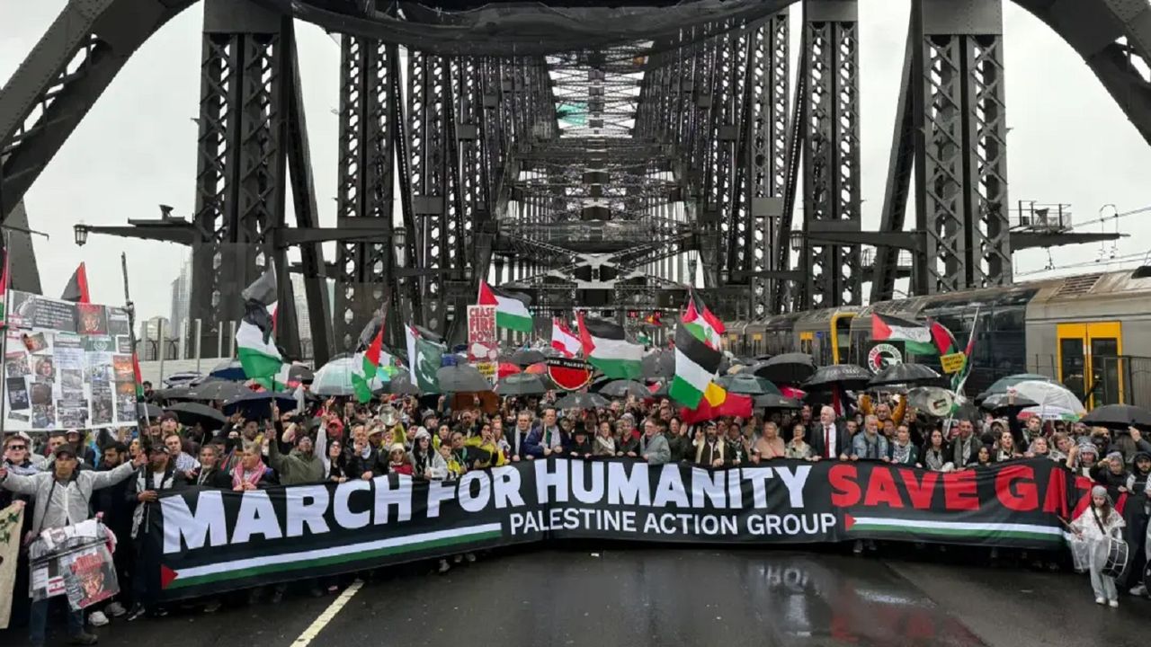 Avustralya Yayın Kurumu (ABC) tarafından aktarılan bilgilere göre, yağışlı hava koşullarına rağmen Gazze’ye destek vermek isteyen binlerce Avustralyalı gösteride yer aldı.