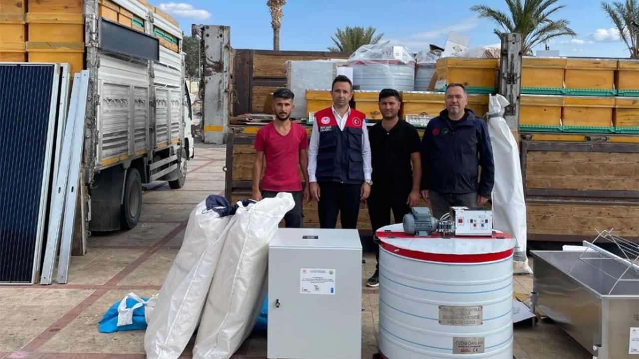 Program çerçevesinde genç arıcılara 50’şer adet modern arı kovanı, bal süzme makinesi, sır alma tezgâhı, sağım çadırı ve taşınabilir güneş enerji paneli gibi temel üretim malzemeleri hibe edildi.