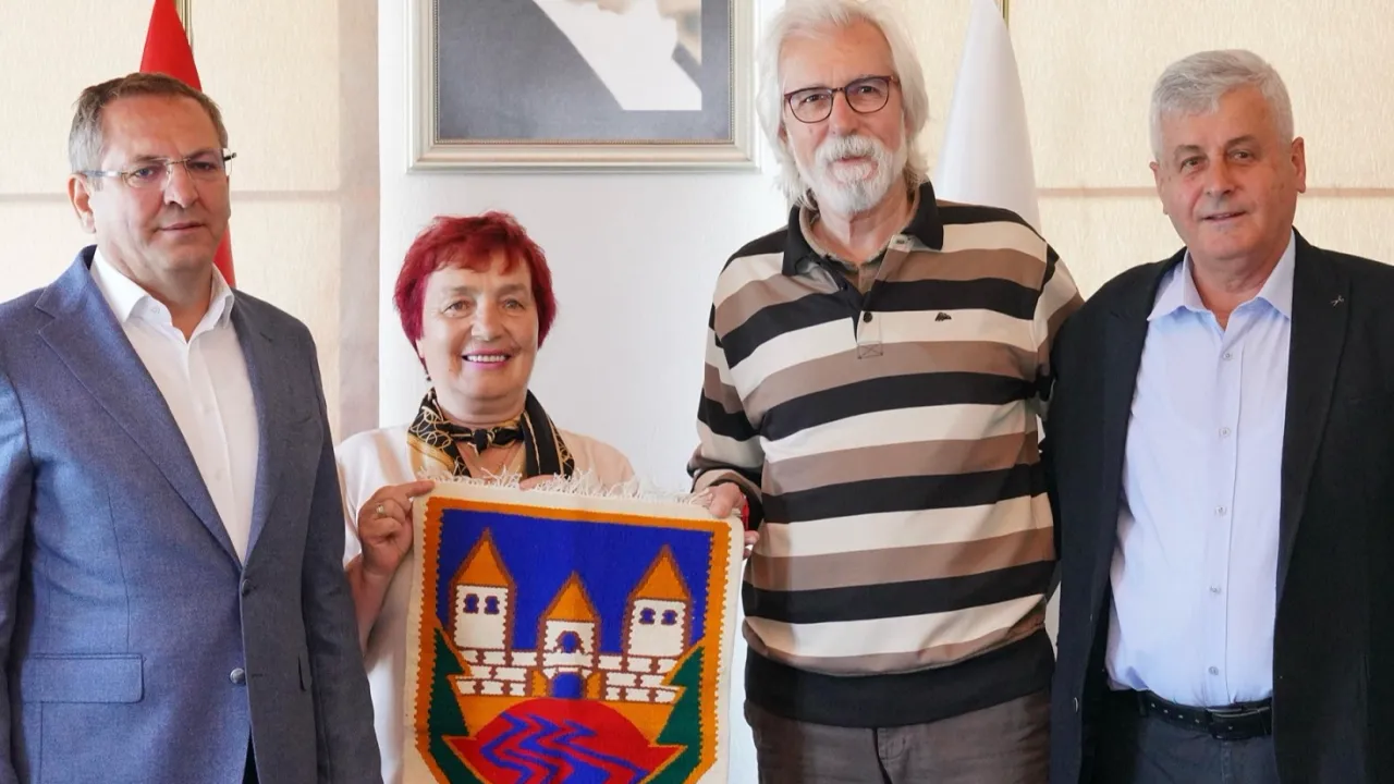 Sırbistan’ın Sancak Bölgesi şehirlerinden Sjenica Belediyesi’nden gelen heyet, Ayvalık Belediyesi’ni ziyaret ederek kardeş şehir olma teklifi ve dostluk mesajlarını iletti.BALIKESİR (İGFA) - Sjenica Kadın Derneği tarafından gerçekleştirilen ziyarette, Sjenica Belediye Başkanı MunibMujagiç’in selamları, dostluk mektubu ve iş birliği daveti Ayvalık Belediye Başkanı Mesut Ergin’e iletildi. Ziyarette iki şehir arasında kültürel ve sosyal alanlarda iş birliği mesajları öne çıktı.