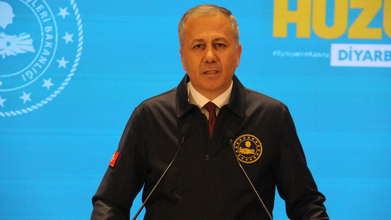 İçişleri Bakanı Ali Yerlikaya, Diyarbakır'da Şanlıurfa Bulvarı üzerinde bulunan bir otelin konferans salonunda düzenlenen Huzur ve Güvenlik Toplantısı'nda konuştu.