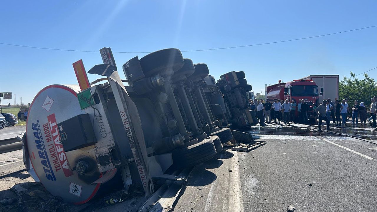 Tarihi İpekyolu üzerinde Kızıltepe istikametine doğru seyreden 47 ADG 259 plakalı tır, tekerleklerinin yol kenarındaki bariyerlere çarpması sonucunda devrildi.