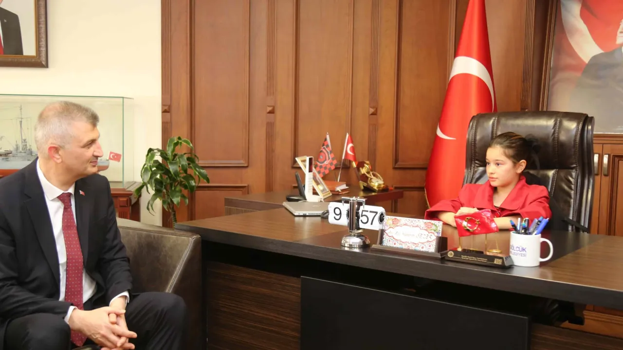 Başkanlık görevini devralan Çırak, çocuklar için daha yaşanabilir ve mutlu bir toplumun inşası için birlikte çalışmanın önemine değindi. Tüm çocukların 23 Nisan Ulusal Egemenlik ve Çocuk Bayramını kutlayan Çırak, Başkan Ali Yıldırım Sezer’e arkadaşları ile görüşerek hazırladığı talepleri iletti. Minik başkanın taleplerini not alan Sezer, yerine getirilmesi için talepleri ilgili birimlere iletti.