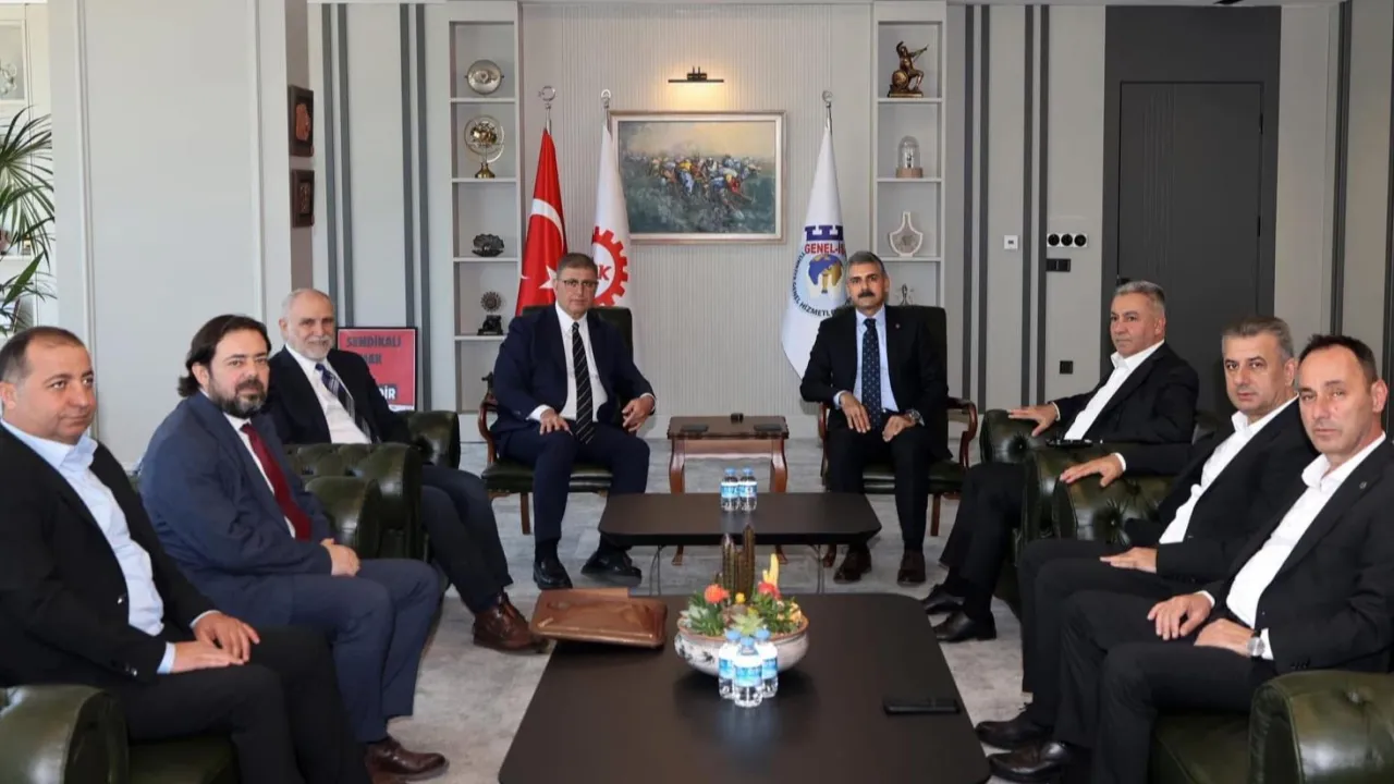 Ziyarette Belediye- İş Sendikası Genel Başkanı Nihat Yurdakul ile görüşen Başkan Tugay, İZDOĞA şirketinde Belediye- İş ile 26 Mart 2024 tarihinde imzalanan toplu iş sözleşmesine ilişkin belediyenin uyarlama taleplerini konuştu.