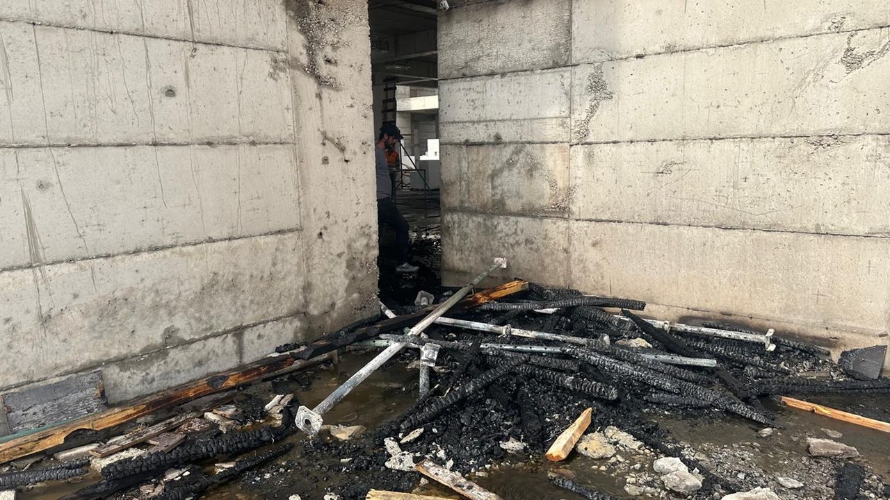 Yangında inşaat sahasında bulunan bazı yapı malzemeleri zarar gördü.