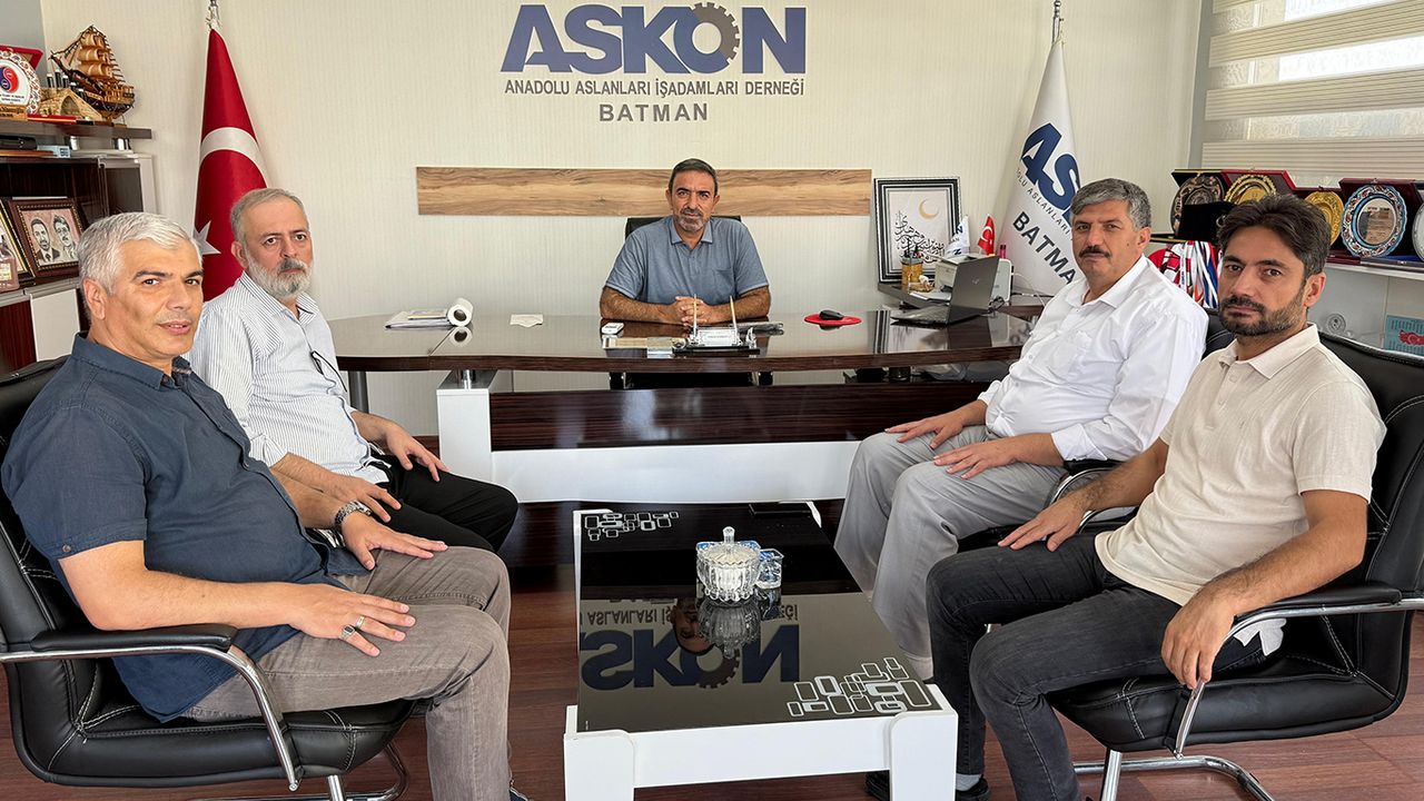 Batman Esnaf ve Sanatkârlar Odası Başkanı Mehmet Sıddık Çiftçi, yönetim kurulu üyeleriyle birlikte Anadolu Aslanları İş Adamları Derneği (ASKON) Batman Şube Başkanı Selman Nasıroğlu’nu ziyaret etti.