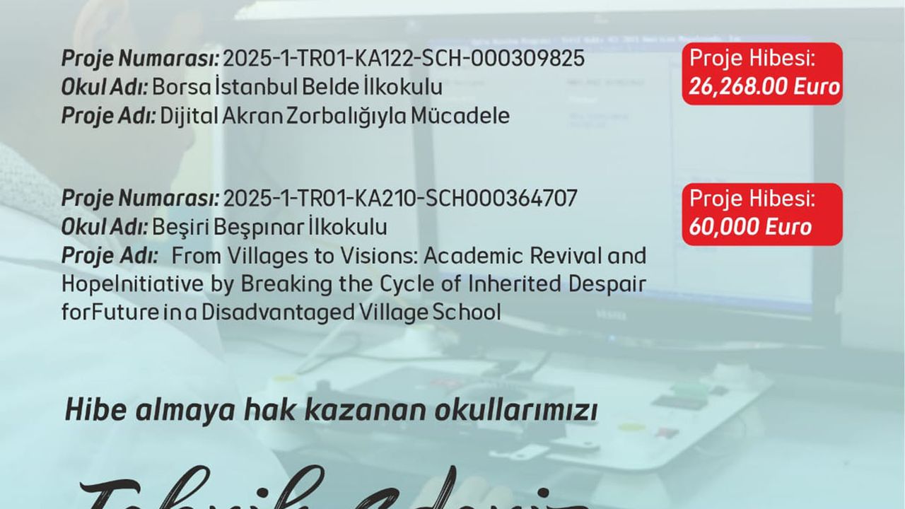 Batman Borsa İstanbul Belde İlkokulu ise “Dijital Akran Zorbalığıyla Mücadele; Okumanın Gücü” projesiyle 26 bin 268 avro hibe desteği aldı.