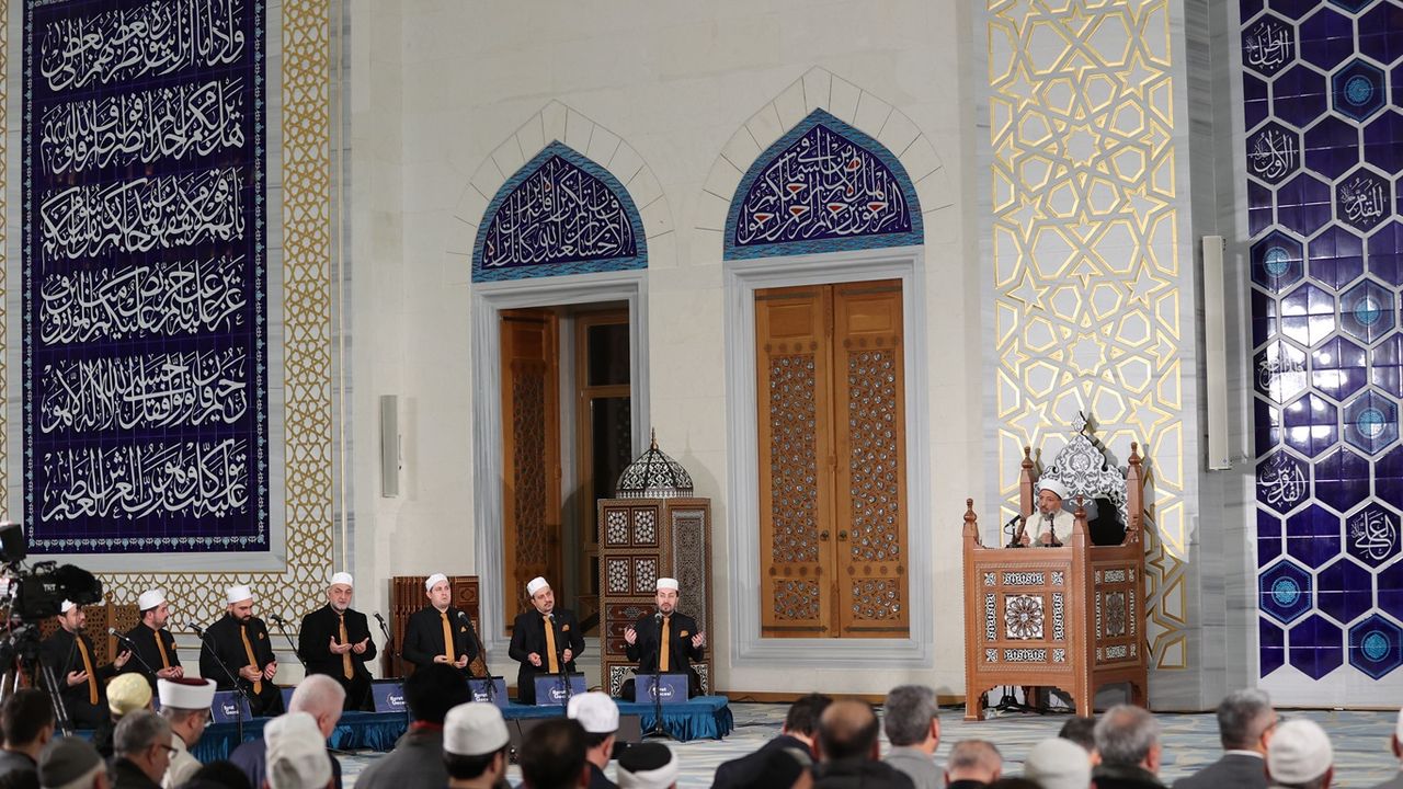 Akşam namazının ardından Kur'an-ı Kerim tilaveti, salavat ve kasidelerle başlayan programda konuşan Diyanet İşleri Başkanı Prof. Dr. Safi Arpaguş, Berat Gecesi'nin Ramazan-ı Şerif'in müjdecisi olan üç aylarda, son durak mesabesindeki olduğunu söyledi.