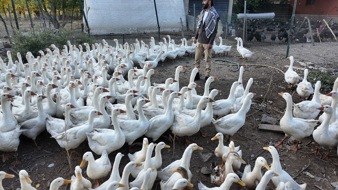 Kentte kanatlı hayvan yetiştiriciliği için tüm şartların uygun olduğunu belirten Kösedağ, "5-6 yıl önce bu işe merak sarmışlığım vardı. Halkımız biraz üretimden uzak kaldığı için ben de üretime ağırlık vermeye karar verdim. Memleketimizin faydasına olabilmek için üretim yapmak zorundayız. Şuan 500'e yakın hindimiz var, 300-400 civarı tavuk var, 1000'in üzerinde ördeğimiz var, 400'ün üzerinde kazımız var." dedi.
