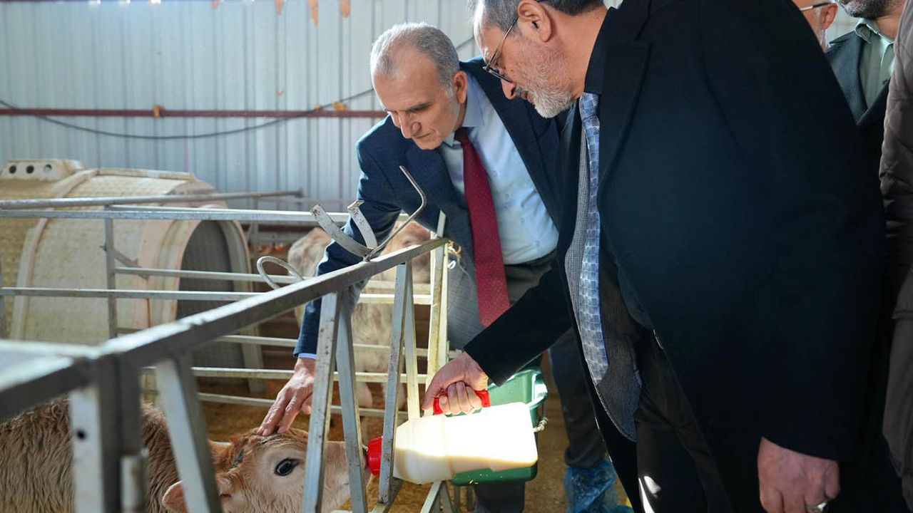 Ziyarette samimi anlar yaşanırken Rektör, buzağıları biberonla besleyerek onların ilk öğünlerine eşlik etti.