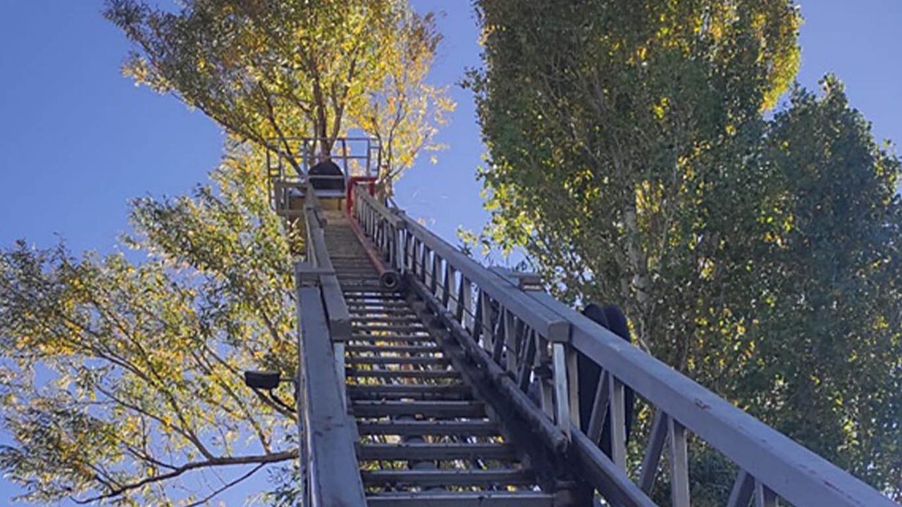 Karlıova ilçesine bağlı Kalencik köyünde bir ağaca çıkan ve inemeyen kediyi fark eden köylüler, durumu itfaiye ekiplerine bildirdi.
