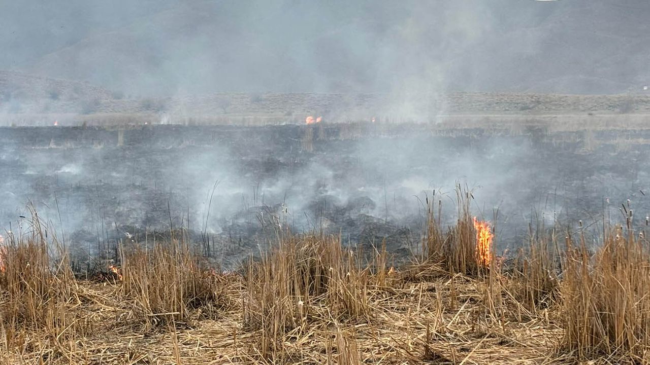 Karlıova ilçesine bağlı Sakaören köyünde, bilinmeyen nedenle köy merasında anız yangını çıktı.