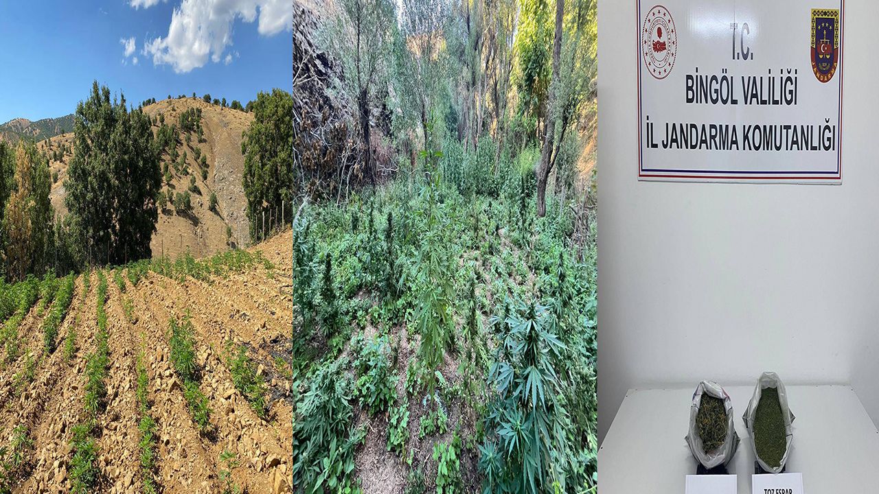 Genç ilçe mülki sınırları içerisinde yürütülen operasyonlarda, 8 farklı noktada toplam 6 bin 319 kök kenevir bitkisi, 4 bin 612 kök skunk bitkisi, 752 gram kubar esrar ve bir kilo 848 gram toz esrar ele geçirildi.