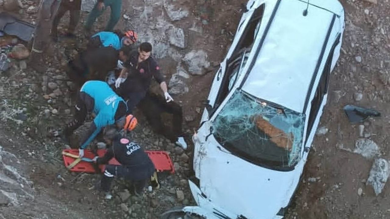 Edinilen bilgilere göre, henüz belirlenemeyen bir nedenle kontrolden çıkan hafif ticari araç, yol kenarındaki taşlık alana savrularak ağır hasar aldı.