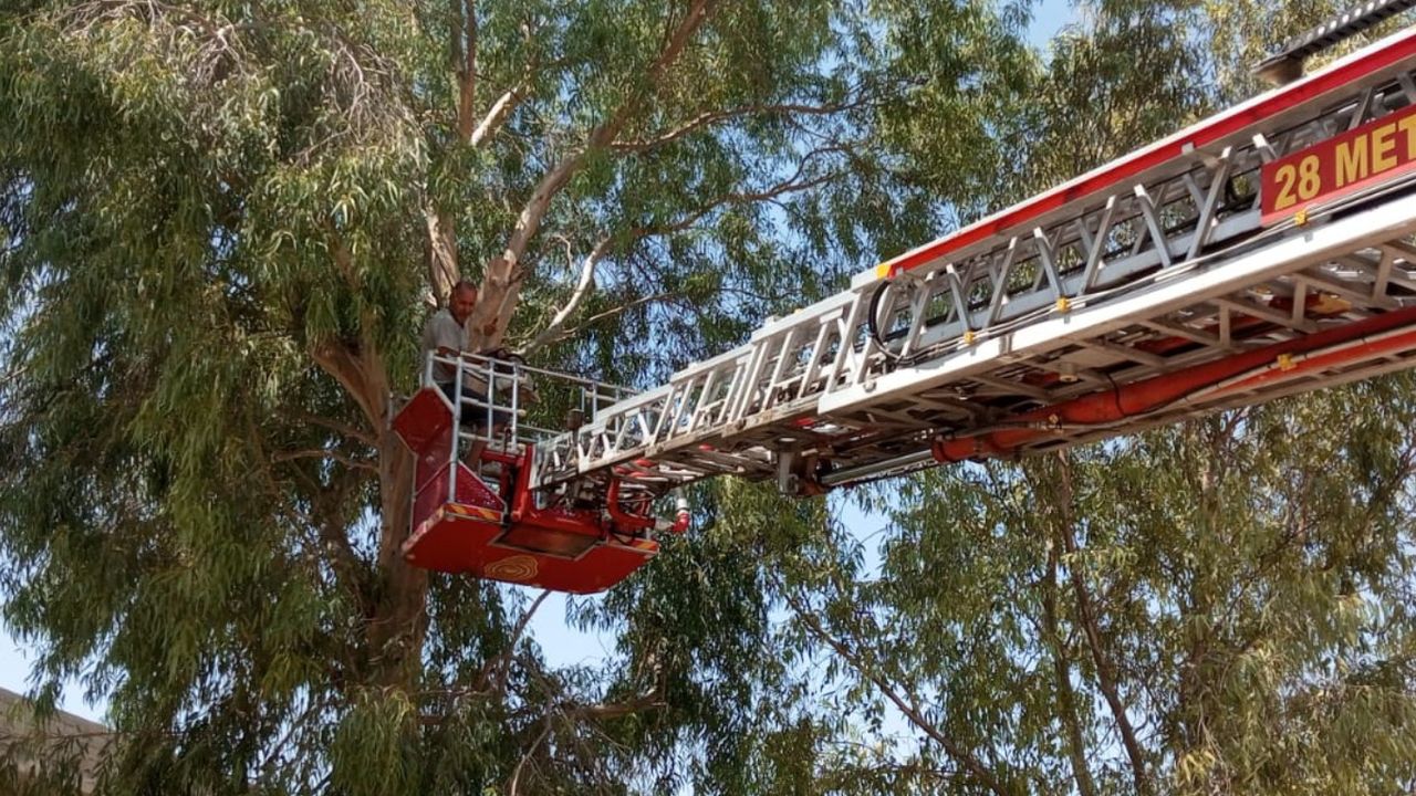 Ağaçtan inemeyen adam, durumu itfaiye ekiplerine bildirdi.