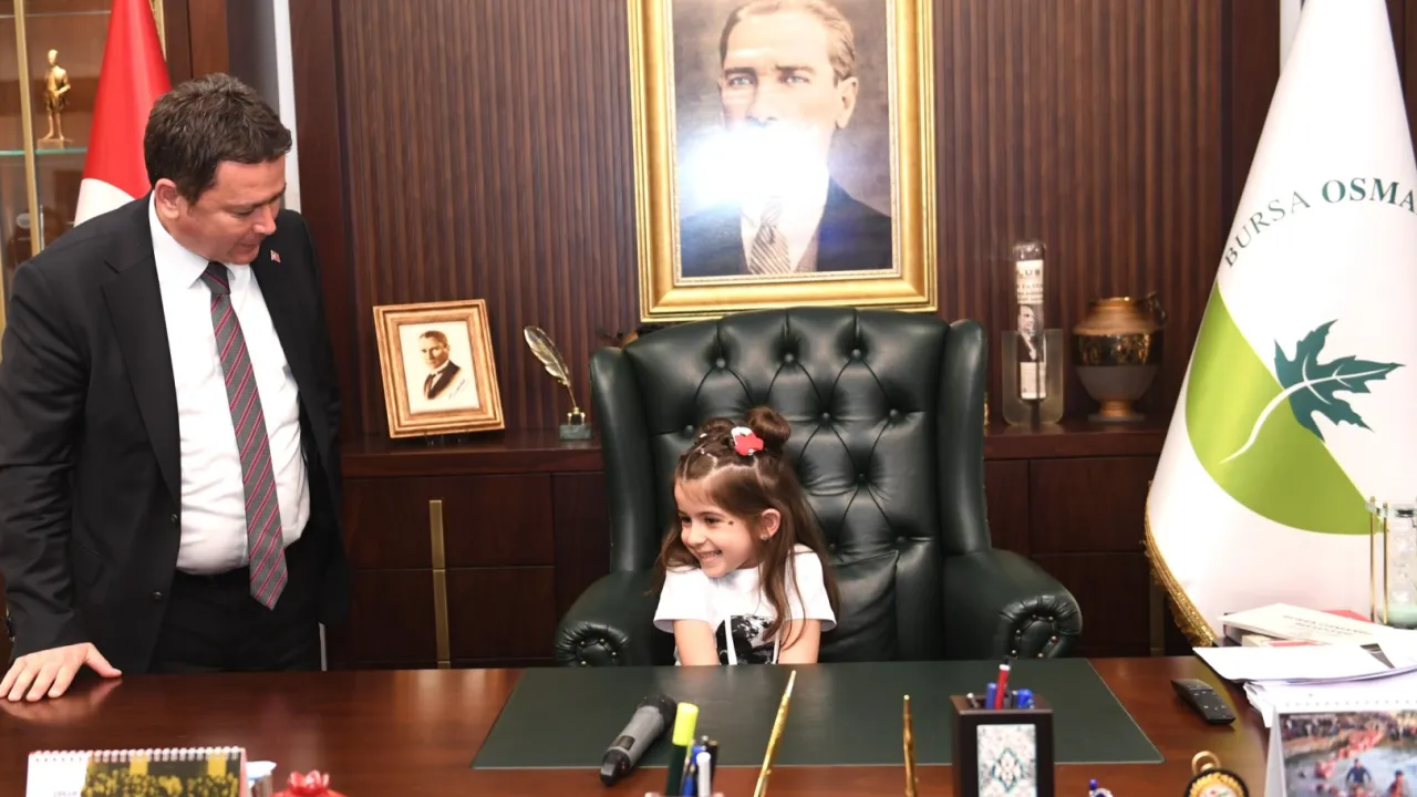Osmangazi Belediyesi Başkanı Erkan Aydın, 23 Nisan Ulusal Egemenlik ve Çocuk Bayramı kutlamaları kapsamında minik öğrencileri makamında ağırladı ve koltuğunu devretti.BURSA (İGFA) - Bursa'da Osmangazi Belediyesi, 23 Nisan Ulusal Egemenlik ve Çocuk Bayramı kapsamında düzenlediği birbirinden özel etkinlikler ile çocuklara unutamayacakları bir bayram yaşatıyor.