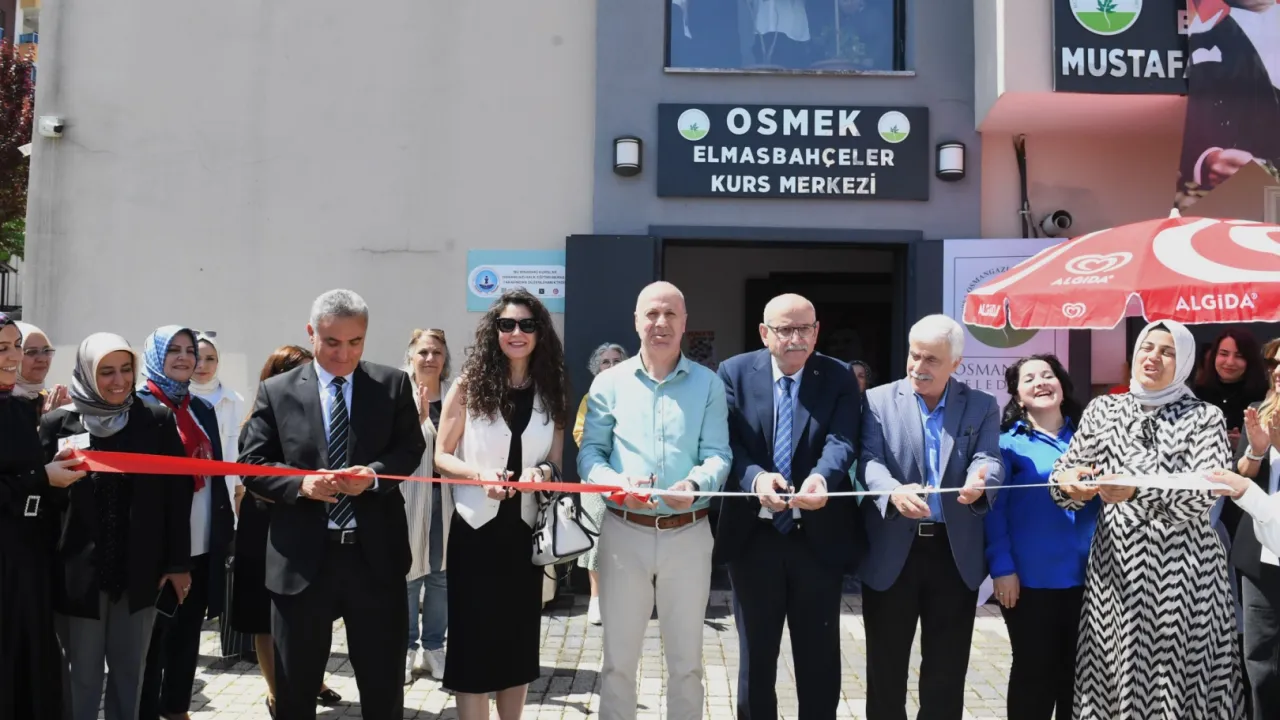 Osmangazi Halk Eğitim Merkezi’nden 14 el sanatları eğitmeni OSMEK Elmasbahçeler Kurs Merkezinde açılan iğne oyası, el sanatları, resim, tel kırma, giyim, örgü, gibi 25 meslek dalında eğitim vererek kursiyerlere meslek öğretiyor.
