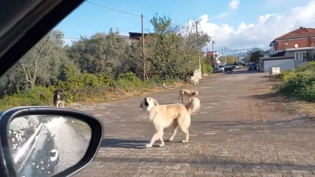 Sosyal medyada paylaşılan videoda, bir grup sokak köpeğinin mahalle aralarında dolaşması ve çevredekilere tedirgin anlar yaşatması dikkat çekiyor.