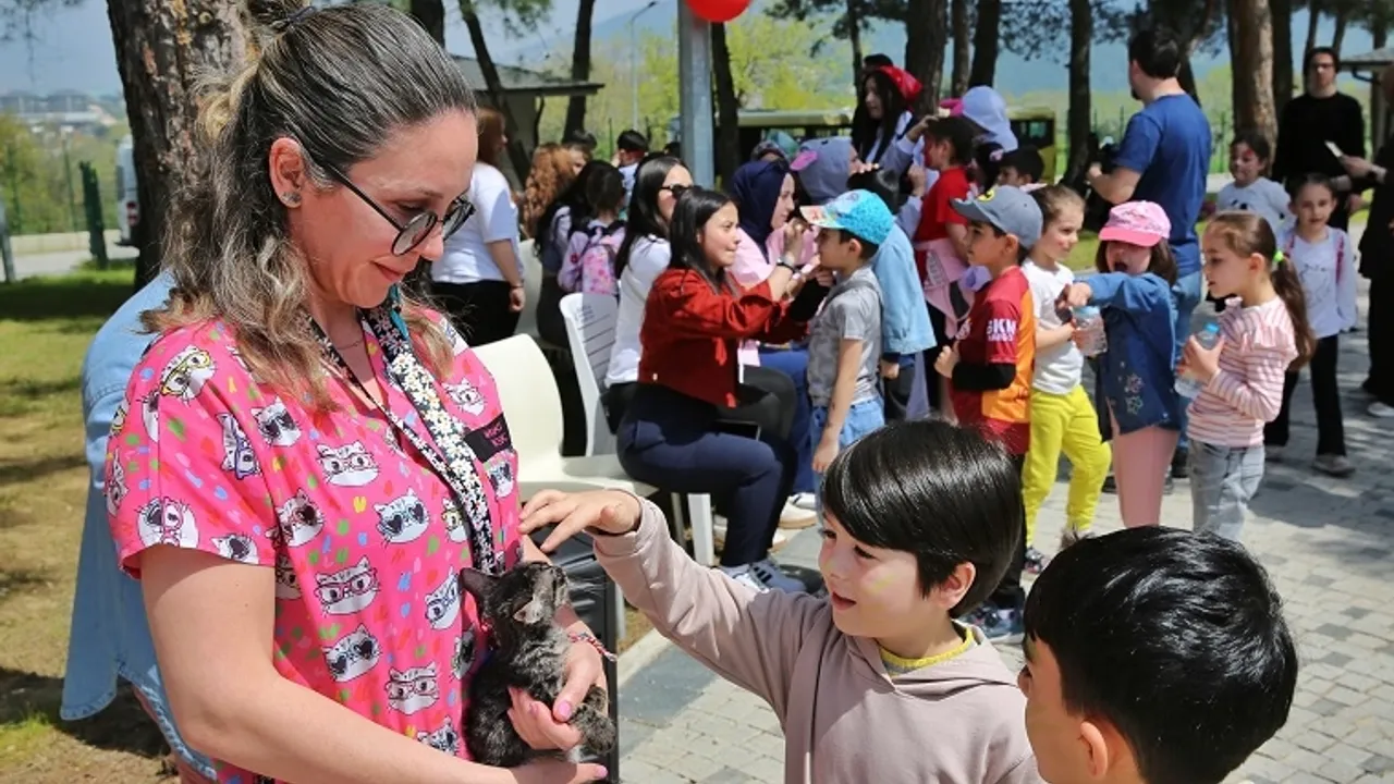 Bursa Büyükşehir Belediyesi Sokak Hayvanları Rehabilitasyon Merkezi'nde yapılan etkinlikte can dostlarla vakit geçirme şansı bulan çocuklar, sağlık durumları ve bakımları ile ilgili de bilgiler aldı.