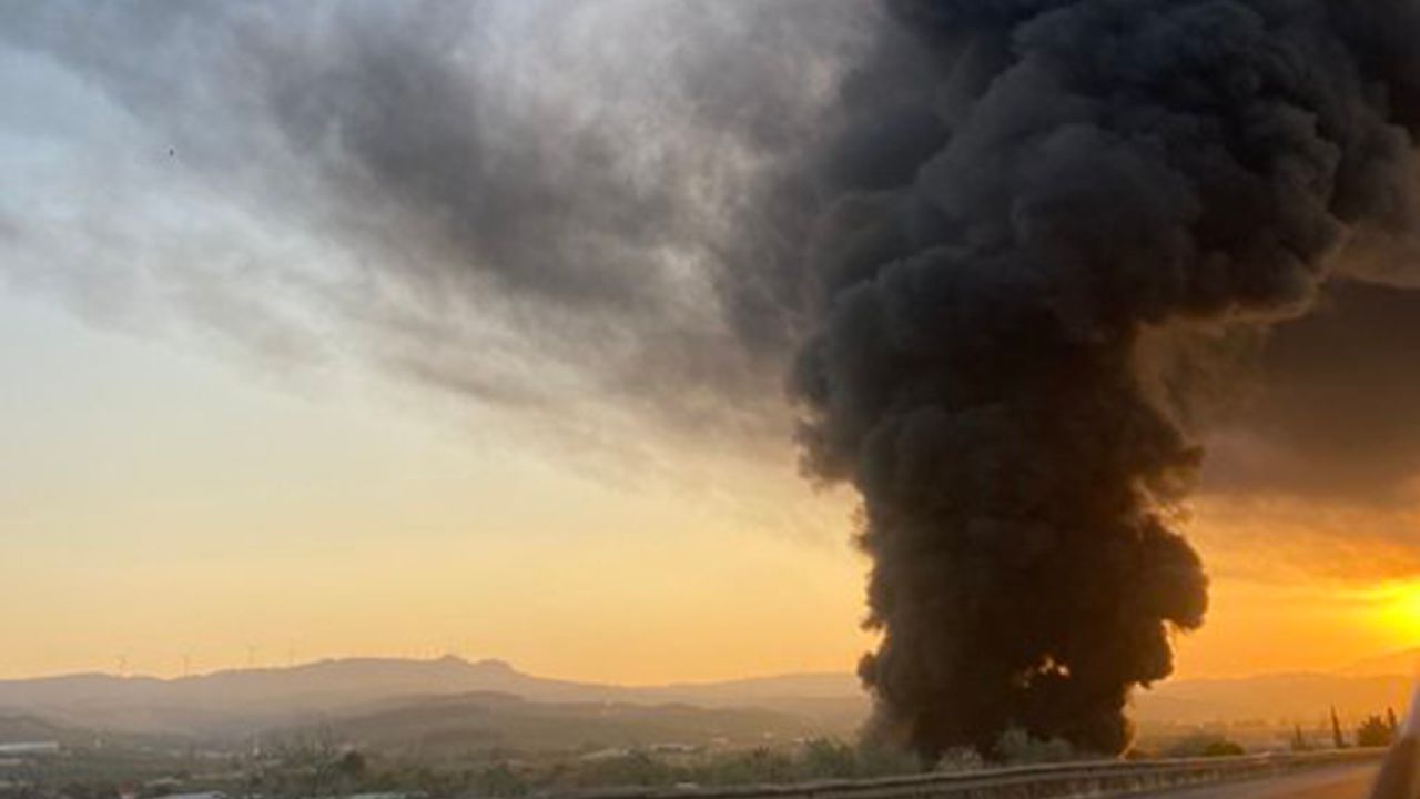 Yoğun dumanın gökyüzünü kapladığı yangına müdahale eden ekipler, alevleri kontrol altına almak için çalışmalarını sürdürüyor.