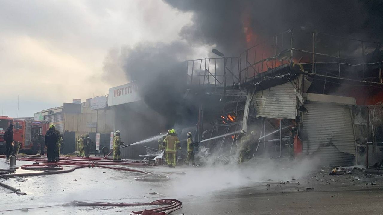 Yiğitler Mahallesi'ndeki Otosansit Sanayi Sitesi'ndeki iş yerinde henüz belirlenemeyen nedenle çıkan yangın kısa sürede büyüdü.