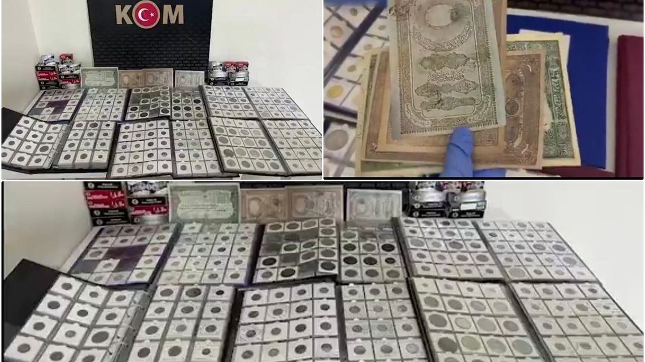 İstihbarat çalışmaları sonucunda takibe alınan şüphelinin adresine, Cumhuriyet Başsavcılığı talimatıyla operasyon düzenleyen ekipler, 122’si altın, 887’si gümüş olmak üzere toplam 1009 tarihi sikke ile Osmanlı dönemine ait 4 adet kâğıt paraya ulaştı.