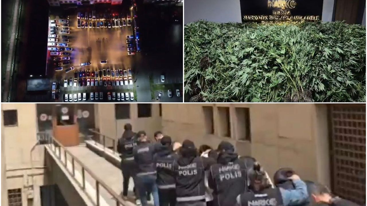 Bursa İl Emniyet Müdürlüğü Narkotik Suçlarla Mücadele Şube Müdürlüğü'nün, Cumhuriyet Başsavcılığı koordinesinde yürüttüğü soruşturma kapsamında 600 personelle uyuşturucu operasyonu düzenlendi.
