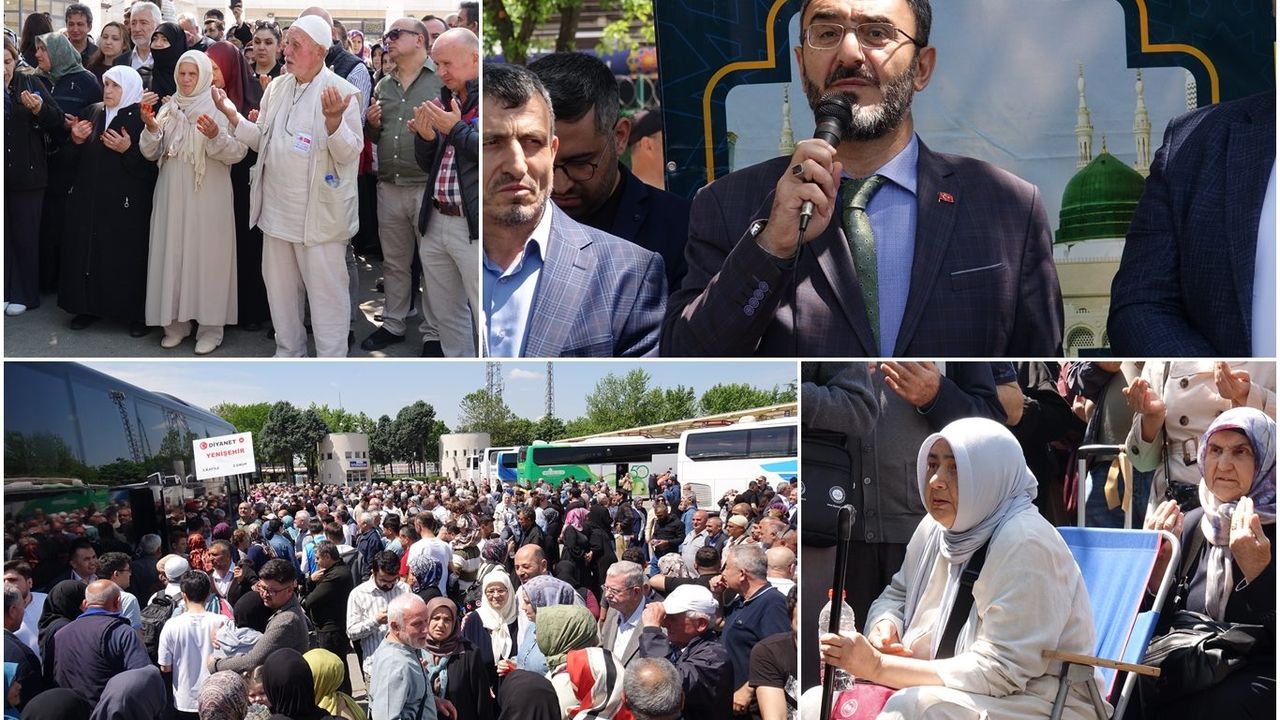 Bursa'dan kutsal topraklara gitmek üzere yola çıkan 287 kişilik ilk hacı kafilesi, bugün öğle saatlerinde dualar eşliğinde Medine'ye uğurlandı.