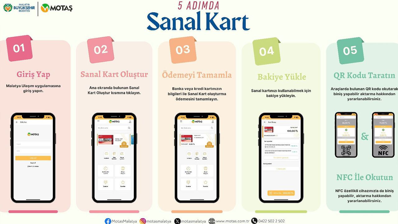 Malatya Büyükşehir Belediyesi iştiraki MOTAŞ, şehir içi ulaşımda dijitalleşmeyi bir adım öteye taşıyarak "sanal kart" uygulamasını hayata geçirdi.
