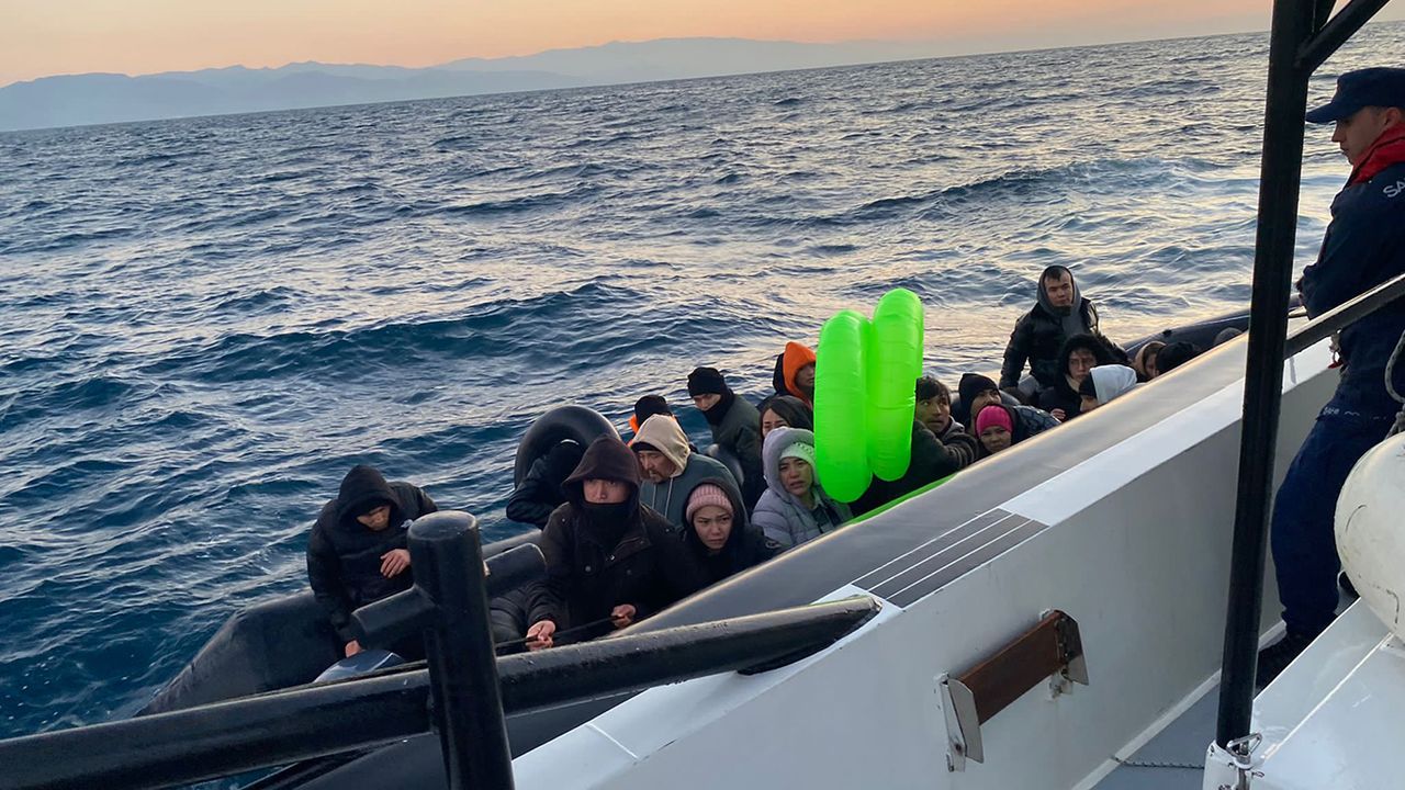 Sahil Güvenlik Komutanlığı ekipleri, Ayvacık açıklarında, motor arızası nedeniyle sürüklenen botta 15'i çocuk 27 düzensiz göçmeni kurtararak karaya çıkardı.