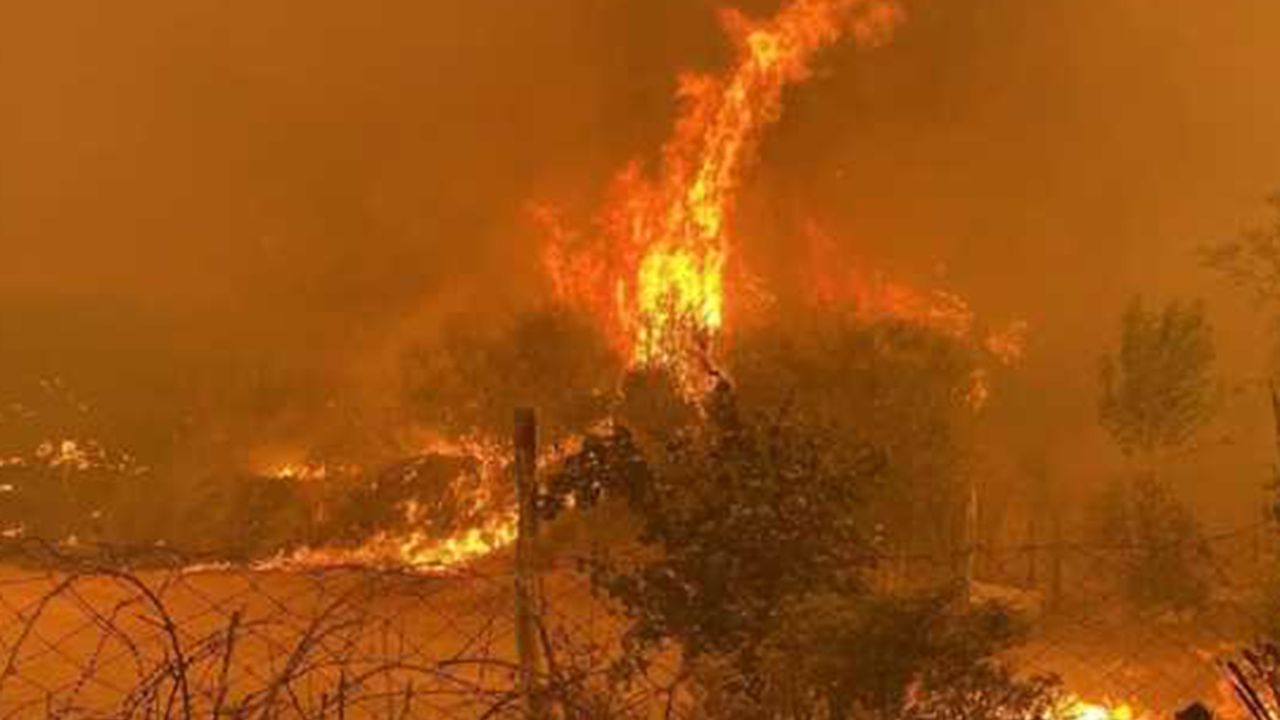 Yangın, rüzgârın da etkisiyle geniş bir alana yayıldı.
