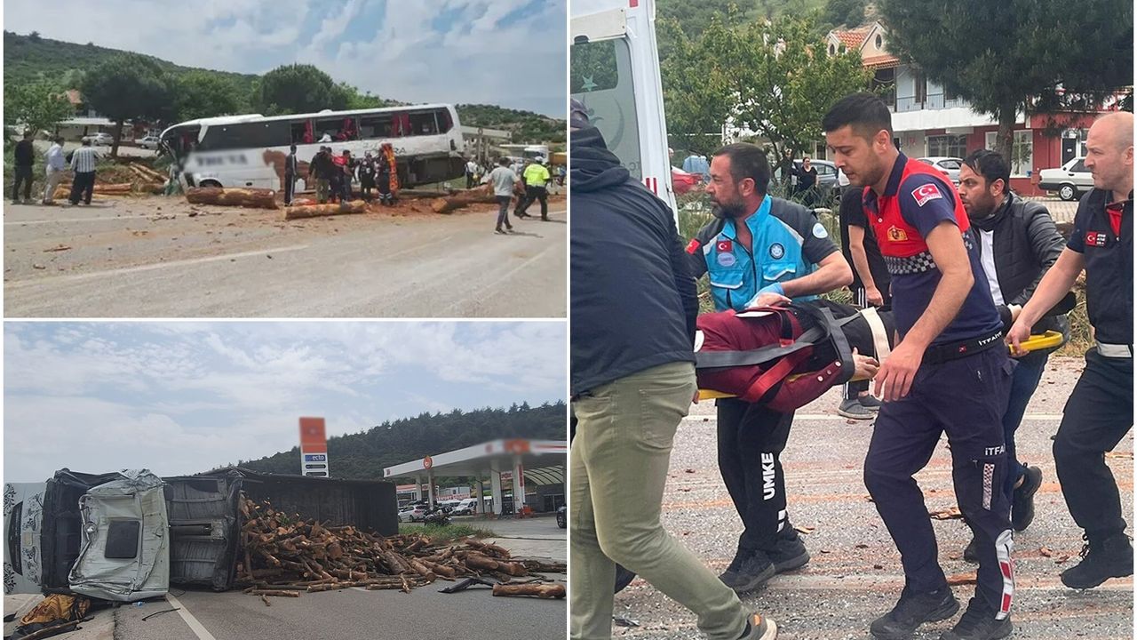 Kazayla ilgili soruşturma başlatılırken, yola savrulan tomruklar Ezine Belediyesi ekipleri tarafından kaldırıldı. (İLKHA)