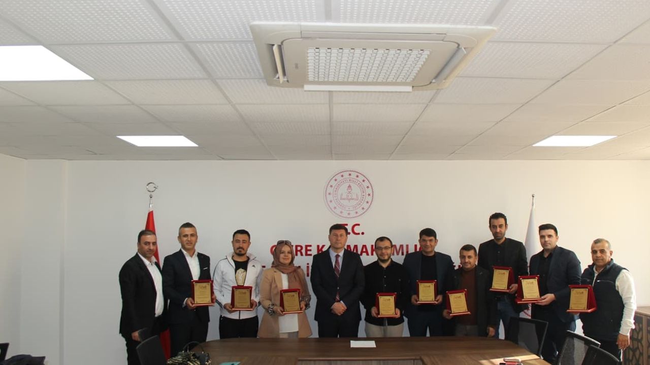 Yapılan yarışmada derece alan okullara, İlçe Milli Eğitim Müdürü Şahan İke tarafından plaket takdim edildi.